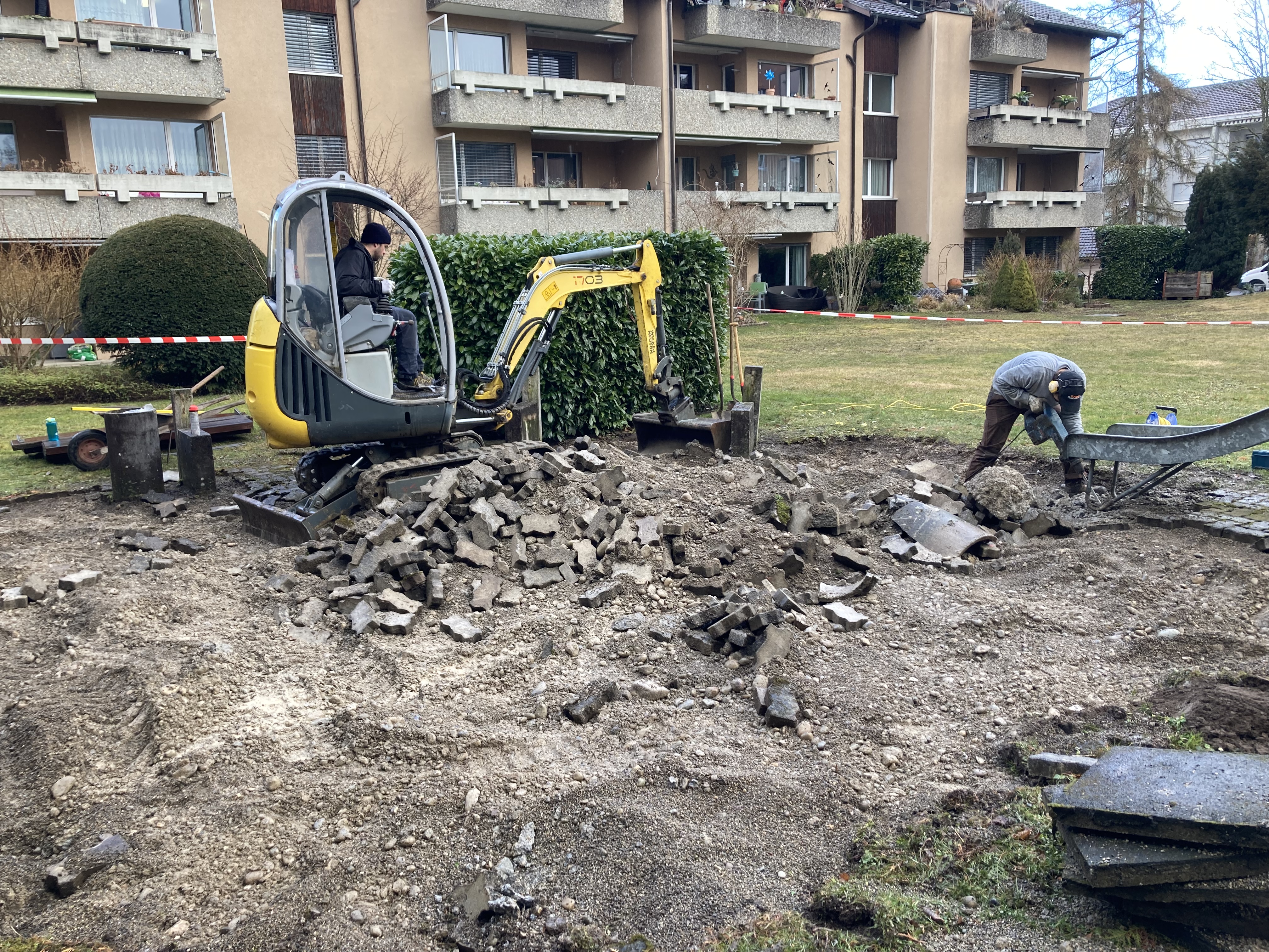 Wir durften für das Atelier Schelb, einen bekannten Spielgerätebauer aus Winterthur, die Vorarbeiten für ein eigens konstruiertes Spielgerät ausführen. Diese Arbeiten beinhalteten: Abbruch der alten Spielgeräte und Beläge, Erdarbeiten, Fundation, neue Wegführung und Einbau des Fallschutzes.